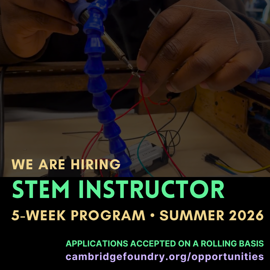 The Foundry is Cambridge’s inclusive hub for creative exploration where equity, belonging, and access come together to cultivate a vibrant community that empowers people to imagine boldly, create freely, and grow together.